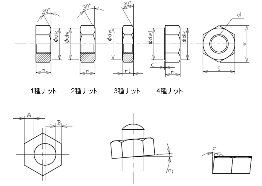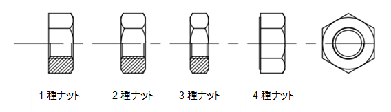 ・4種ナット…ナット高さが呼び径の約8割であり、片面に面取りがある。また、段付きで座面がある。あまり流通はしていません。