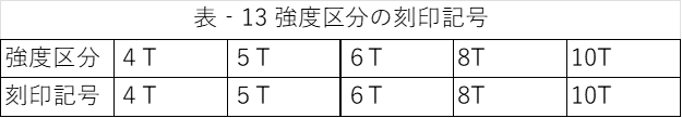 ナットに対する強度区分の表示は、受渡当事者間の協定によります。なお、強度区分を表示する場合は、特に支障がない限り表‐13の刻印記号にするとされています。